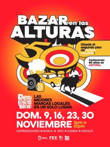El evento, denominado “Bazar en las Alturas”, se realizará los días 9, 16, 23 y 30 de noviembre, ofreciendo a los visitantes una amplia variedad de propuestas locales. Entre las atracciones se incluyen espacios para emprendimientos del colectivo Pericolectiver, cerveza artesanal, zonas instagrameables (para fotografías del recuerdo), música en vivo de distintos géneros y diversas sorpresas.