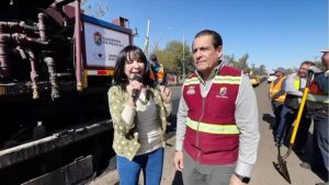 Mexicali.- La presidenta municipal Norma Bustamante acudió a supervisar los trabajos de rehabilitación en calzada Heroico Colegio Militar, donde se emplea tecnología de vanguardia mediante utilizando la máquina recicladora.