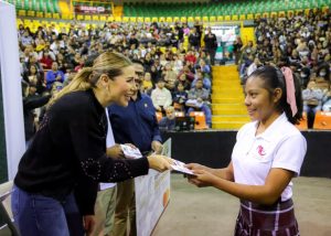 Mexicali.- De manera que estudiantes de preparatoria puedan continuar sus estudios, la gobernadora Marina del Pilar Avila Olmeda encabezó la entrega de la Beca Universal para el Bienestar “Benito Juárez”, que beneficiará con apoyos económicos de 1,900 pesos bimestrales a 1,200 jóvenes de media superior.