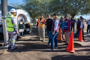 Mexicali.- La Comisión Estatal de Servicios Públicos de Mexicali (CESPM) llevó a cabo una Jornada de Servicios en la colonia Villa de Alarcón Segunda Sección, actividad que contó con la presencia de la gobernadora Marina del Pilar Ávila Olmeda, quien acompañó al director del organismo, Armando Carrazco López, en la atención directa a las y los vecinos reunidos en el parque de la comunidad.