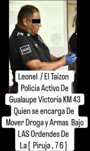 Estuvo asignado la administración pasada al poblado de Ciudad Guadalupe Victoria, y según información no oficial difundida en redes sociales, se encargaba del traslado de estupefacientes, así como el de armas, para la organización criminal antes descrita.