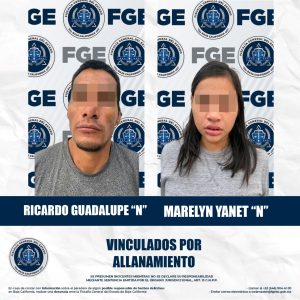 Mexicali.- La Fiscalía Regional de Mexicali, a través de la Unidad de Investigación con Detenidos Poniente, obtuvo con base en los elementos de prueba la vinculación a proceso de una pareja imputada por el delito de allanamiento.