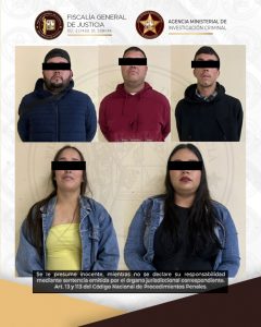 A las 04:10 horas, en la calle 31 de la colonia mencionada, fueron detenidos en flagrancia Manuel “N”, de 30 años, Juan Enfrían “N”, de 21 años, Caleb Arath “N”, de 28 años, María Iveth “N”, de 25 años, y Yadira “N”, de 21 años.