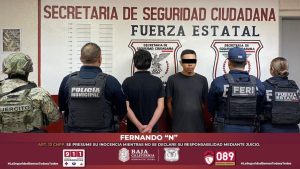 Mexicali.- La rápida reacción de agentes de la Fuerza Estatal de Seguridad Ciudadana (FESC) permitió contener una situación de riesgo en la capital del Estado, donde dos hombres -uno de ellos menor de edad- fueron detenidos tras una persecución que también movilizó a elementos del Ejército Mexicano y de la Policía Municipal, quienes colaboraron en el aseguramiento perimetral y en la consolidación del operativo; los individuos portaban un arma de fuego con varios cartuchos útiles y viajaban en un vehículo con reporte de robo vigente.