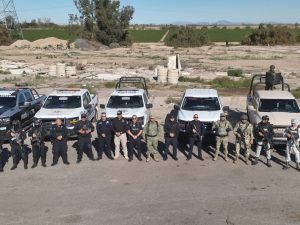 Mexicali.- Siguiendo la estrategia de coordinación que impulsa el Gobierno de Mexicali a través de la Dirección de Seguridad Pública, la Policía Municipal se sumó al primer operativo interestatal entre Baja California y Sonora, en el que participaron autoridades de los tres niveles de gobierno.