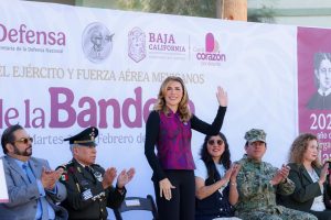 Mexicali.- En una fecha que enaltece la unidad y la soberanía de México, la gobernadora Marina del Pilar Avila Olmeda encabezó la conmemoración del Día de la Bandera, realizada en el cuartel del 23 Regimiento de Caballería Motorizada en la capital del estado, para fortalecer la identidad y el respeto a este lábaro patrio.