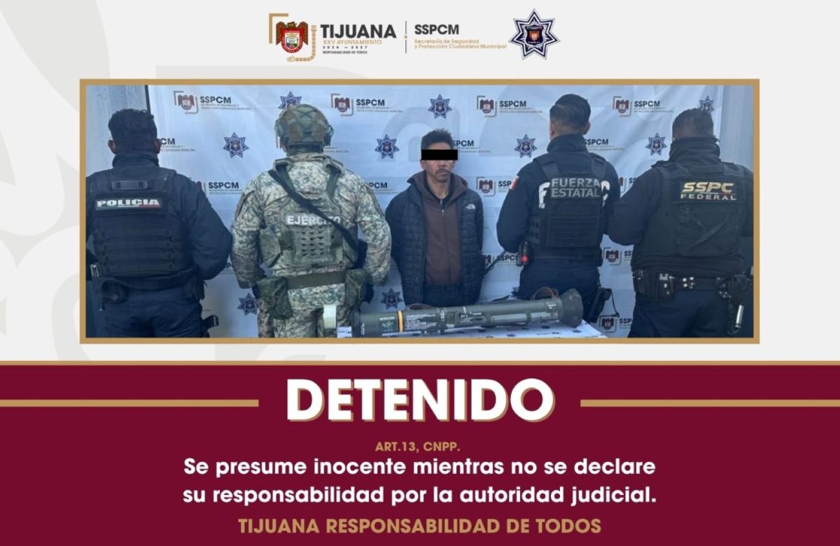 Detiene Policía Municipal de Tijuana a objetivo prioritario en posesión de lanza cohete en Sánchez
